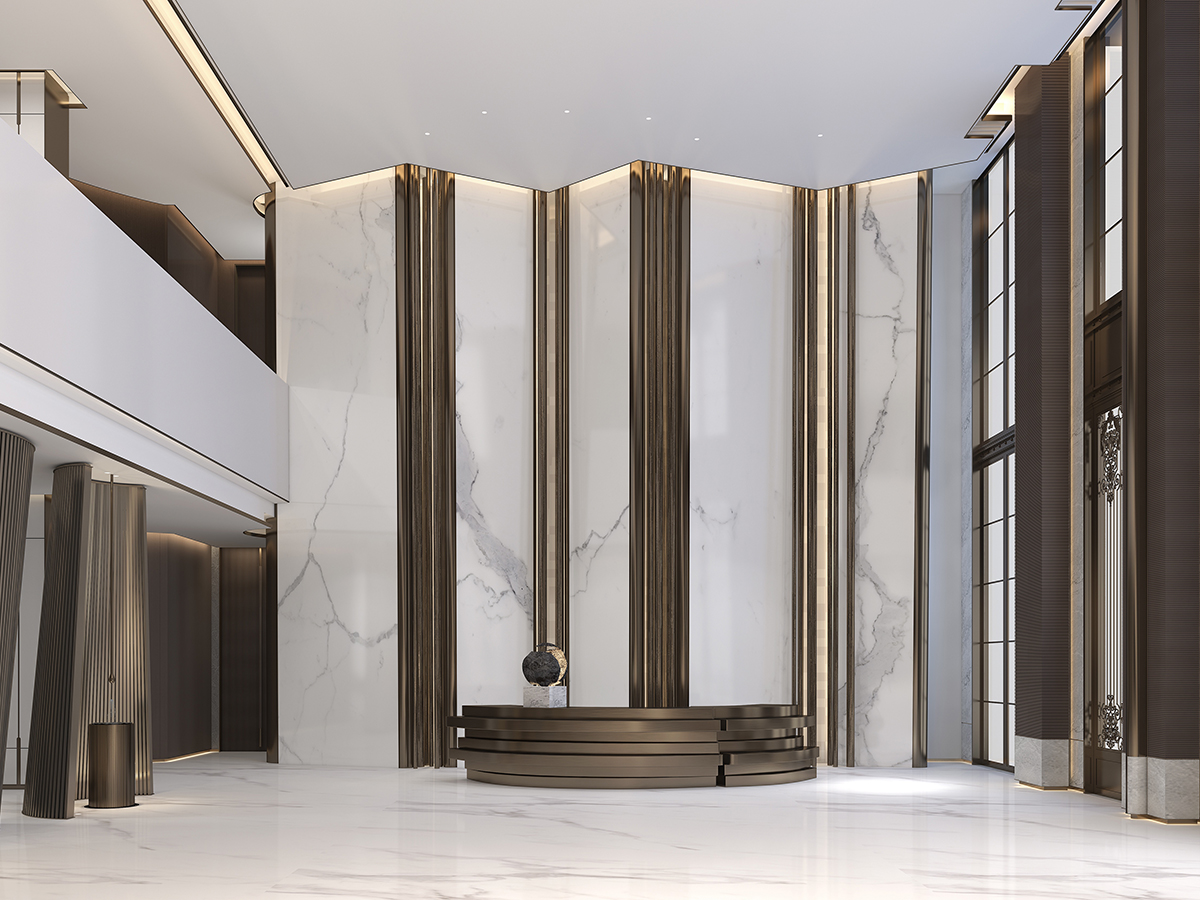 中式格形設計,與現代視覺藝術融合,打造具有豐富空間層次感的視線關系,在感受空間的恢弘尺度和禮序感中,體會古樸含蓄的東方氣象。